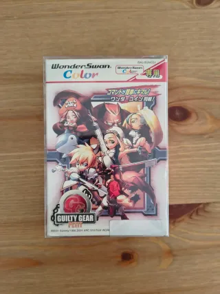 Juego Guilty Gear Petit para WonderSwan Color. Caja con bastantes signos de uso, tiene restos de pegamento de alguna etiqueta en la parte frontal y una pegatina con antirrobo en la parte inferior. Cartucho e instrucciones en muy buen estado. Funcionando perfectamente. Wonder Swan Bandai