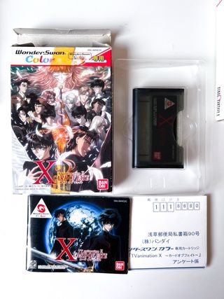 Videojuego TV Animation X: Card of Fate para WonderSwan, basado en la serie de anime X de CLAMP, con un sistema de combate mediante cartas y estética 100% noventera. Un título exclusivo del catálogo japonés que nunca se lanzó en Europa. Incluye caja original, manual, reg card y cartucho. Funciona correctamente. Envío bien protegido. Posibilidad de lote y envío combinado con más artículos exclusivos disponibles en mi perfil. wonderswan, clamp, anime, cartas, bandai, retrogaming, japon, handheld, coleccionismo