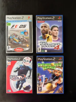 Pack de cuatro videojuegos para PlayStation 2. - F1 05 - Pro Evolution Soccer 4 - Pro Evolution Soccer - Everybody's Tennis Precio por el lote Precio por separado sería 7€ cada uno