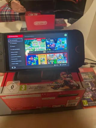 Consola Nintendo Switch en muy buen estado. - Color azul y rojo. INCLUYE: - Dos mandos - Mando para unir los mandos independientes. - Doc para conectar a la TV con sus respectivos cables (HDMI) y alimentador originales. - Incluye funda portátil con fundas de silicona para los mandos y protectores de silicona para los joysticks. Además incluye un soporte para apoyar la nintendo en el juego portátil. - Incluye caja en perfecto estado con todos sus complementos. Cualquier duda o fotografías adicionales o datos no duden en escribirme. Muchas gracias. Precio negociable.
