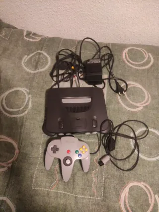 Consola Nintendo 64 en color gris europea. - Incluye consola. - Incluye mando holgura típica de la época - Incluye cables y adaptador de corriente originales