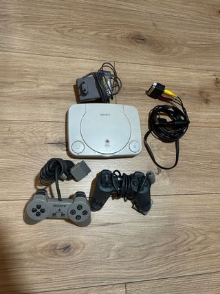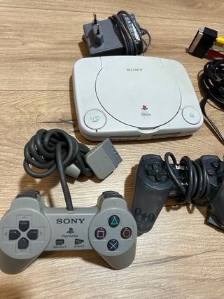 Consola clásica Sony PlayStation 1. - Incluye consola. - Dos mandos. - Cableado necesario para su conexión. - Funciona perfectamente - el botón de apertura de disco a veces falla pero funciona correctamente.