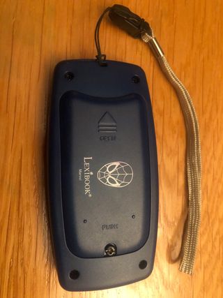 Consola portátil temática de Spider-Man, ideal para los fans del superhéroe. - Diseño en rojo y azul. - Incluye correa de sujeción. - Botones de control y joystick.
