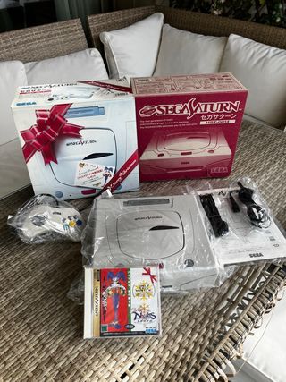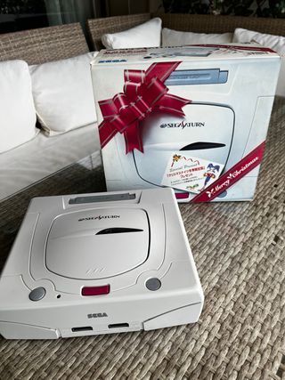 Consola Sega Saturn en su edición especial de Navidad. Incluye la consola, un mando y el juego Christmas Nights into Dreams... - Mando original Sega. - Juego Christmas Nights into Dreams... con carátula especial. - Cables de conexión y alimentación. - Todos los plasticos originales - Serial match