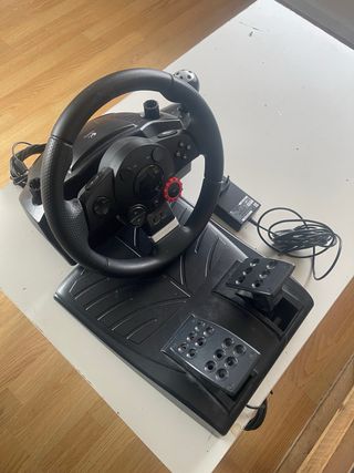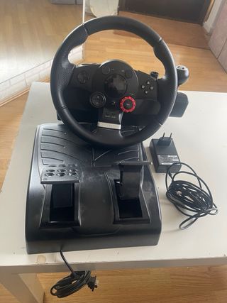 Volante Logitech G29, ideal para piezas o para quien quiera repararlo. Incluye pedales y palanca. - Volante con base. - Pedales de acelerador, freno y embrague. - Palanca de cambios. - Adaptador de corriente. - incluye adaptador para aro real y mod de cambio secuencial también tengo el cubre pedales aunque no salga en la foto. FALLOS: - freno y embrague con rateo falla alguna conexión en los potenciómetros - el cambio creo que se salta la segunda solo e usé como secuencial - en el volante se pulsa avces el botón de start o el de cámara cuando el forcefeeback trabaja.