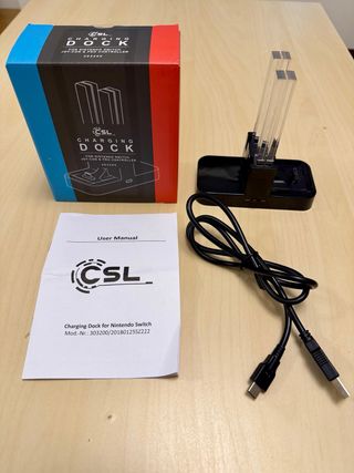 Estación de carga para Nintendo Switch, Joy-Con y Pro Controller. Vale para para 4 mandos ó para 2 + Mando Pro Controller. Incluye cable USB.