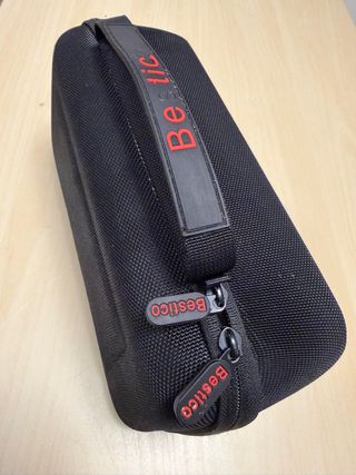 Funda de color negro especifica para los modelos Nintendo Switch y Switch Modelo OLED. Marca Bestico. Compacta y ligera, protege muy bien el aparato porque es rígida. Se ajusta perfectamente para poder almacenar la consola. Cuenta con un bolsillo interior de malla con cremallera que aumenta el espacio de almacenanamiento y permite guardar las correas del Joycon, el mando Joycon, el adaptador de CA y 10 cartuchos de juego. Tiene un asa superior para un agarre cómodo. Está como nueva.