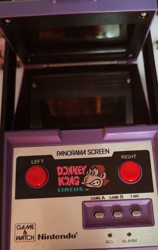 Juego años 80', un único dueño. Por los años, el "Donkey" se difumina un poco al moverse de lado a lado, pero permite jugar, ver las piñas y moverse para recogerlas, de ahí la reducción del precio.