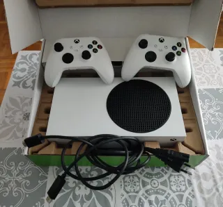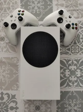 Consola de videojuegos Xbox Series S de 512GB en color blanco. Diseñada para ofrecer una experiencia de juego inmersiva y rápida. - Consola en perfectas condiciones. - Incluye dos mandos inalámbricos en perfecto estado: - 1 lo usé sólo 3 veces, está nuevo - El otro incluye batería recargable, cable USB-C para cargar incluido, y también dos gomas para los joystick - La vendo porque no le doy uso.