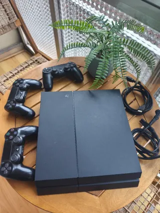 Consola de videojuegos PlayStation 4 en color negro. Incluye un mando en perfecto estado y dos con dritf , incluye cables. - Consola PS4. - Un mando DualShock 4 - Dos mandos DualShock 4 (CON DRITF) - Cable de alimentación. - Cable HDMI. - Cable USB para carga de mandos.