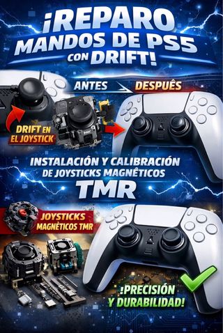Servicio de reparación para mandos de PlayStation 5 y PlayStation 4. Se reparan todas las partes de tu mando. - Joystick magnéticos - Flex - Botoneras - Carcasas - Baterías
