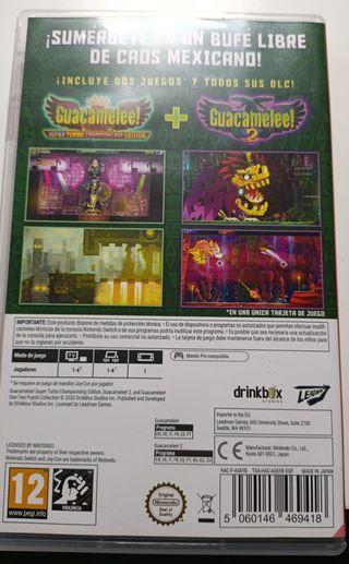 Colección de juegos Guacamelee! para Nintendo Switch. - Incluye Guacamelee! Super Turbo Championship Edition. - Incluye Guacamelee! 2. - Clasificación PEGI 12.