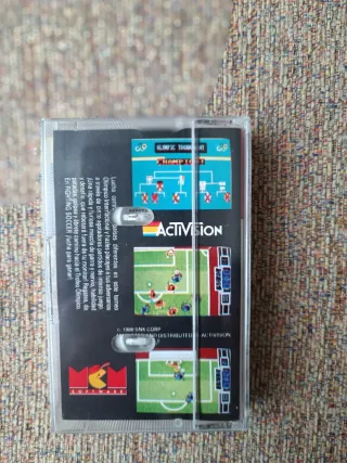 Juego de fútbol para ZX Spectrum. - Portada con diseño de banderas y campo de fútbol. - Incluye el título del juego Fighting Soccer.