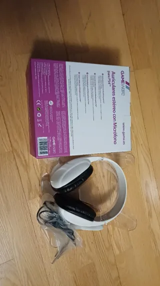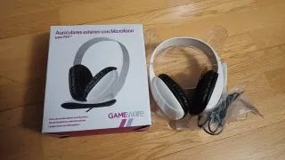 Auriculares estéreo con micrófono de la marca GAMEware, diseñados para PS4. - Diseño en color blanco y negro. - Conexión para PS4. -Están abiertos pero sin uso, fueron un regalo que nunca se uso.