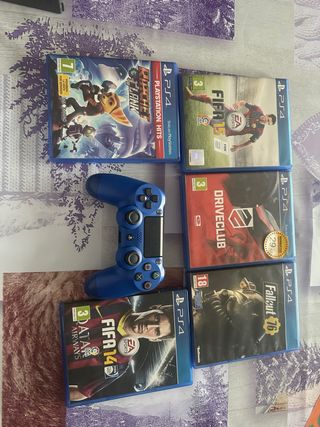 Pack de mando azul para PlayStation 4 junto con cinco videojuegos. - Mando DualShock 4 color azul. - Juegos incluidos: Ratchet & Clank, FIFA 15, Driveclub, FIFA 14, Fallout 76.