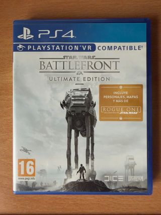 Edición Ultimate del videojuego Star Wars Battlefront para PlayStation 4. - Compatible con PlayStation VR. - Incluye personajes, mapas y más de Rogue One: Una historia de Star Wars. - Clasificación PEGI 16.