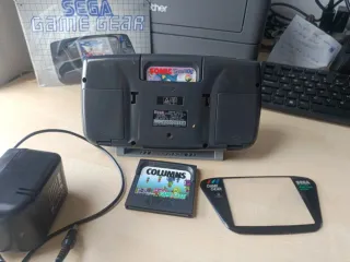 Consola portátil SEGA Game Gear en color gris y negro. Incluye juegos. - Consola SEGA Game Gear - Juego Columns - Juego Sonic the Hedgehog - Adaptador de corriente - Marco protector de pantalla