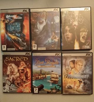 Colección de juegos para PC en formato CD-ROM de la marca FX. Lote completo 40€, sueltos 5€ ud. - Imperivm II - Pro Race Driver - Virtua Tennis - Motocross - Supreme Snowboarding - Delta Force 2 - Mars Invader - Sacred - Drácula II - Port Royale - Runaway - A Road Adventure - The Longest Journey