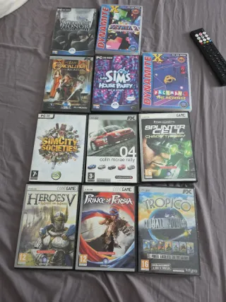 Lote de 11 videojuegos para PC. Todos completos El Juego Tropico y expansiones esta precintado. - Medal of Honor: Allied Assault - Tzar: El Rey Arturo - Los Sims: House Party - Dynamite: Tetrix 2 - Dynamite: Packman 2 - SimCity Societies - Colin McRae Rally 04 - Tom Clancy's Splinter Cell: Chaos Theory - Heroes of Might and Magic V - Prince of Persia - Tropico: Global Power