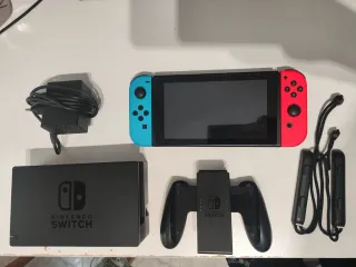 Consola Nintendo Switch con Joy-Cons en azul y rojo. Recién formateada. NO acepto intercambios por otra consola. - Incluye base de carga. - Incluye cargador. - Incluye agarre para Joy-Cons. - Incluye correas para Joy-Cons.