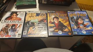 Conjunto de cuatro videojuegos clásicos para PC. - Dreamfall: The Longest Journey - Grim Fandango - Harry Potter y la Cámara Secreta - Harry Potter y la Piedra Filosofal Todos en buen estado, con sus cajas originales. Perfectos para coleccionistas o para quienes disfrutaron de los videojuegos de PC de los años 2000. ⚠️ Juegos pensados para sistemas de la época (Windows antiguos). Pueden requerir configuración para funcionar en sistemas actuales. Tengo más artículos en mi perfil por si quieres hacer lote.
