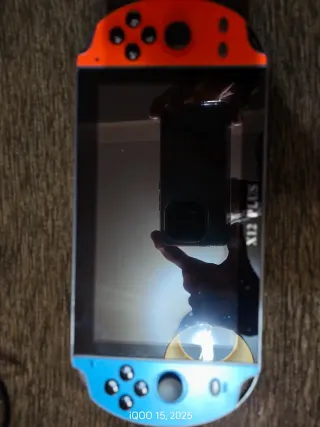 Consola portátil X12 Plus con un diseño llamativo en dos tonos. - Color azul y rojo - Pantalla integrada de 7 pulgadas - Controles de juego. - Muchos juegos de diferentes consolas -Casi sin uso, como nueva -Con cable de carga y para conectar a la tv