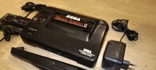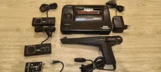 Consola de videojuegos clásica. Adaptador de antena no funciona, se aprecia en la foto que necesita solo un punto de soldadura, pero es funcional. - Modelo compacto y elegante. - Ideal para coleccionistas. Incluye: - Cableado original - 2 mando - Pistola Light phaser - Consola Máster System II - Juego Alex Kid integrado