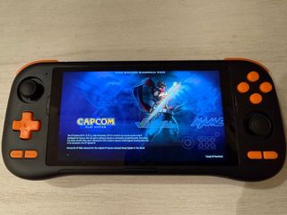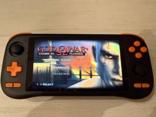 Consola portátil Kinhank K56 con pantalla. - Diseño ergonómico en color negro y detalles naranjas. - Joystick y botones de control. - Botones HOME y BACK. - Tarjeta micro SD 128Gb - Pegasus y Emulation Station