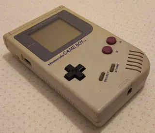 Consola portátil clásica Game Boy DMG-01 en color gris/beige. Incluye cinco juegos en dos cartuchos. - Cartucho 1: LAND - Cartucho 2: TENNIS / TETRIS / Battle City/Meldoc