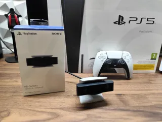 Se vende consola PlayStation 5 en color blanco con unidad de disco, junto con la cámara HD, muy cuidada, por cambio a PC. Preferible venta en mano y en conjunto. Con cajas originales y manual original. Dispongo también de RV primera generación y 2 motions, se escuchan ofertas por estos artículos ( no por la consola) - Incluye consola PS5. - Incluye cámara HD para PS5.