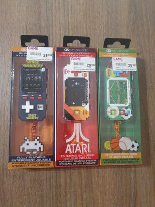 Pequeños juegos retro de Nintendo en formato de bolsillo, nuevos en su embalaje original. Con una pantalla LCD y altavoces impresionantes. Incluye varios juegos. 1 = 20 € / 2 = 35 € / 3 = 50 €