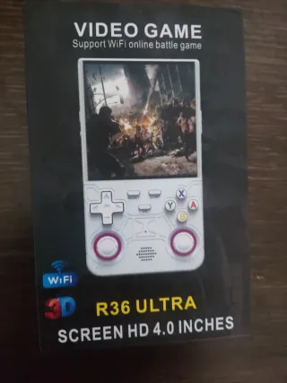 Consola de videojuegos portátil R36S Ultra en color blanco. Soporta juegos online a través de WiFi. - Pantalla HD de 4.0 pulgadas. - Tiene WiFi - Soporte para juegos 3D. Tengo 2 consolas