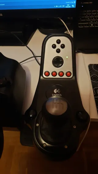 Volante de carreras Logitech G27 con pedales y palanca de cambios. - Volante con revestimiento de cuero. - Pedales de acelerador, freno y embrague. - Palanca de cambios secuencial.