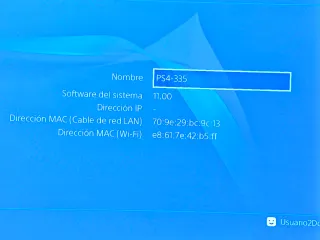 Consola PlayStation 4 en color negro. - Modelo: PS4-335 - Software del sistema: 11.00 - Dirección MAC (Cable de red LAN): 70:9e:29:bc:9c:13 - Dirección MAC (Wi-Fi): e8:61:7e:42:b5:ff