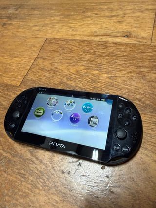 Consola portátil PS Vita Slim en color negro. Tiene magia así que se puede descargar cualquier juego gratuitamente. -Cuenta con tarjeta SD2Vita Pro para poder descargar cualquier juego y jugar también a la PSP, como se puede apreciar en las fotos. -Tiene una tarjeta de memoria de 128gb para mayor capacidad y poder almacenar todos los juegos y archivos que se desee. Se puede ver y probar en persona, entrego con la funda que se ve en las fotos y su cable de carga.