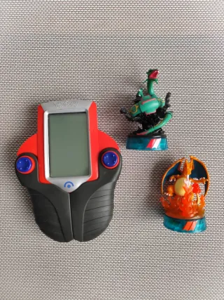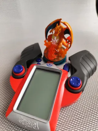 Battle Trainer con figuras de charizard y rayquaza. A rayquaza le faltan las antenas.