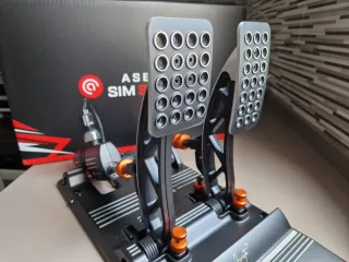 Pedales de simracing Asetek Invicta. - Diseño en aluminio con acabado en negro y detalles naranjas. - Diseñados en Dinamarca - Todos los elastomeros y muelles incluidos. - Freno hidráulico que no necesita mantenimiento - Base robusta para mayor estabilidad.