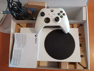 Consola Xbox Series S en color blanco con almacenamiento SSD de 512GB. Incluye mando y cables. - Diseño compacto y moderno. - Almacenamiento rápido SSD. - Mando inalámbrico incluido.