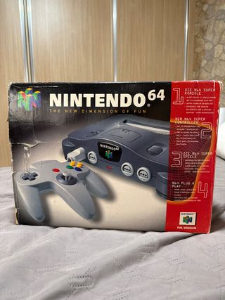 Consola Nintendo 64 en caja original, con mando. Funciona perfectamente - Incluye consola y mando. - Versión PAL. - 5 juegos incluidos -con la documentación y caja original