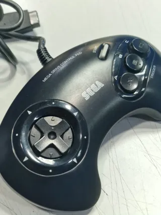 Consola clásica Sega Mega Drive en color negro. Incluye mando, alimentador original, conector RF original y cable AV compatible - Consola Sega Mega Drive. - Mando de control. - Cableado. Ref_ 1260119052997