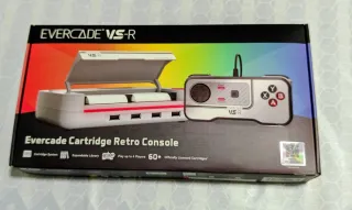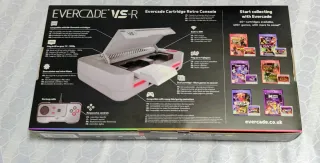 Consola de videojuegos Evercade VS-R en color plata y blanco. Diseñada para una experiencia retro. - Sistema de cartuchos. - Biblioteca expandible. - Permite jugar hasta 4 jugadores. - Incluye más de 60 cartuchos con licencia oficial.