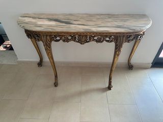 Consola de pared dorada con mármol
