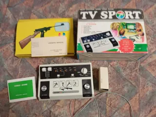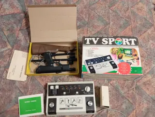 Consola de videojuegos clásica TV Sport, ideal para coleccionistas y amantes de lo retro. Incluye todos sus accesorios originales para una experiencia completa. - Incluye la consola principal. - Incluye pistola de luz. - Incluye manual de instrucciones. - Incluye caja original.