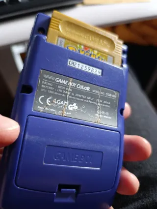 Consola portátil clásica. - Modelo Game Boy Color. - Color morado. - juegos: Pokemon edición oro Looney tunes colector venganza Marciana Star wars ( la pegatina muy tocada) Lucky Luke ( pegatina tocada) bomber man The jungle book Buzz lightyear Hercules Fifa 96 Tech deck