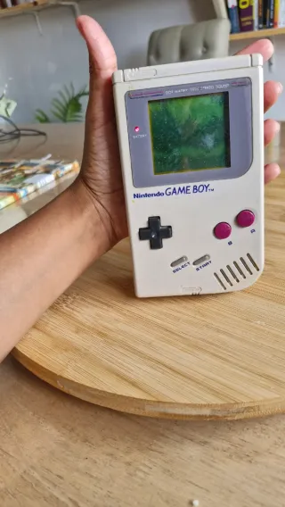 Gameboy clásica. Abierta por primera vez solo para limpieza. Todo original excepto pantalla, que se cambió por estar rallada, pero la que tiene no es comprada, es original de otra Gameboy. Todos los tornillos sin pasar de rosca. No se blanqueó por respetar el color totalmente original. Ideal coleccionistas. Es de las primeras, de las que se producieron en Japón.