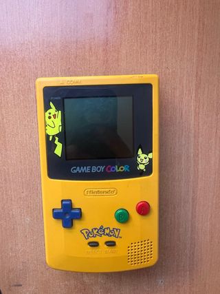 No funciona el boton start. No contiene la tapa de las pilas. Entrega en mano en parada del metro de Poblenou (C/Bilbao, 54) Consola portátil clásica, edición especial Pokémon. - Diseño llamativo en color amarillo. - Decorada con motivos de Pikachu. - Modelo Game Boy Color.