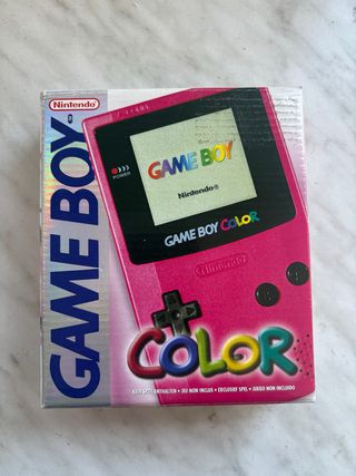 Consola portátil Nintendo Game Boy Color en color rosa. - Pantalla a color. - Diseño compacto y ergonómico.