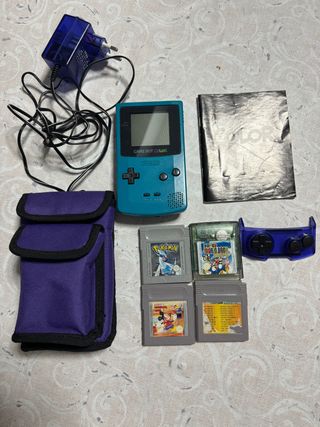 Game Boy Color en azul. Funciona perfectamente. Incluye una funda de regalo. No incluye ni juegos ni pilas.