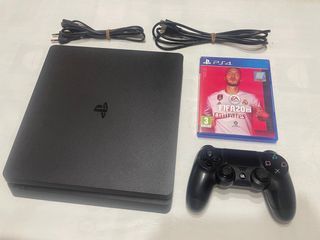 Consola PlayStation 4 slim negra de Sony en perfecto estado y funcionando perfectamente, además de que viene con su mando original negro, sus respectivos cables y de regalo el divertido videojuego de FIFA 20. Cualquier cosa no dudes en preguntar. HAGO ENVÍOS O TRATO EN MANO EN ZARAGOZA 📦📩🤝🏻 Más novedades en mi perfil 🎄 No leer: consola, sistema, nintendo, nes, system, wii, DS, gameboy, advance, gamecube, retro, vintage, antiguo, tecnología, playstation, psp, ps2, colección, juegos, gaming, arcade, videojuegos, mando, ordenador, xbox, gamecube, game, funda, zaragoza, ps4, slim, discos, mandos, controles, sony, video, portatil,