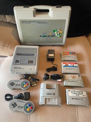 - Consola super famicom 1chip - cable de video y alimetacion* - Maletin super mario world - Super game boy - juegos: Dragon quest 4, raiders spirits, pro soccer, secret of mana 2 * necesitas un trafo (230v a 120v) para usar la fuente original, o una fuente de master system o game gear pal